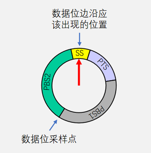 - 若发送方或接收方的时钟有误差,随着误差积累,数据位边沿逐渐偏离SS段,则此时接收方根据再同步补偿宽度值(SJW)通过加长PBS1段,或缩短PBS2段,以调整同步